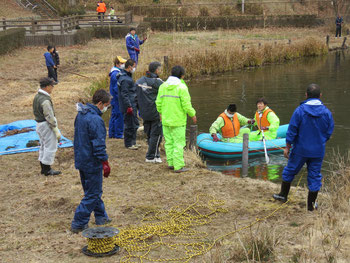 長谷(ながたに)池、藻の清掃を行いました